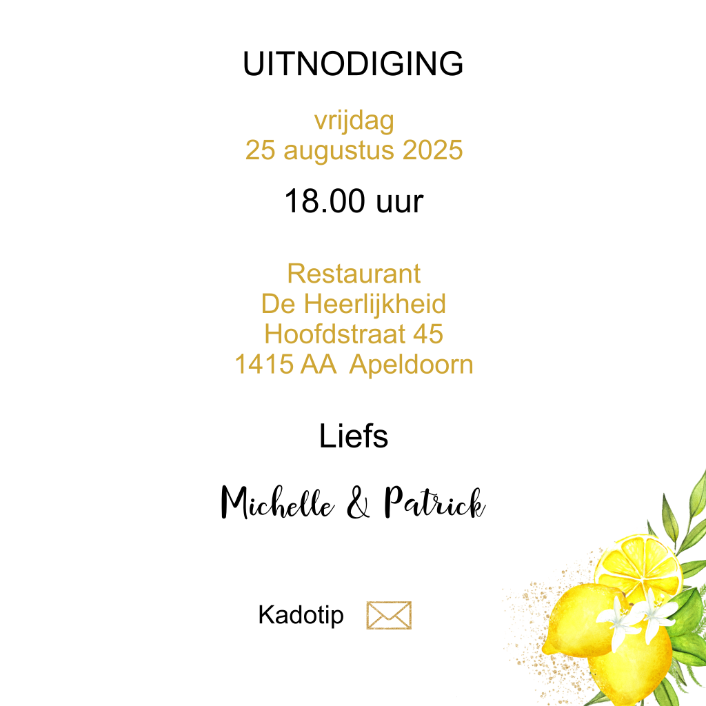 Frisse uitnodiging huwelijksjubileum met citroenen