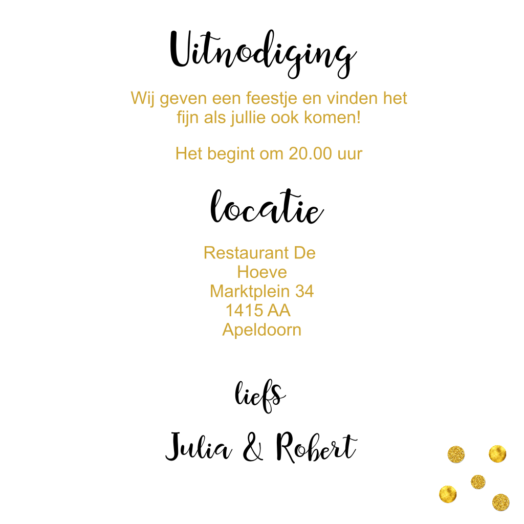 Uitnodiging huwelijksjubileum met een foto in een hart van glitter. Door de confetti heeft deze kaart een feestelijke uitstraling.