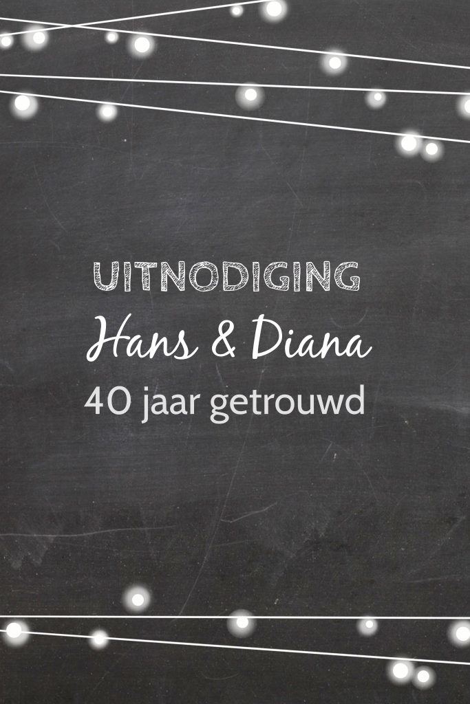 Uitnodiging 40 jaar huwelijk met lampen slingers op krijtbord