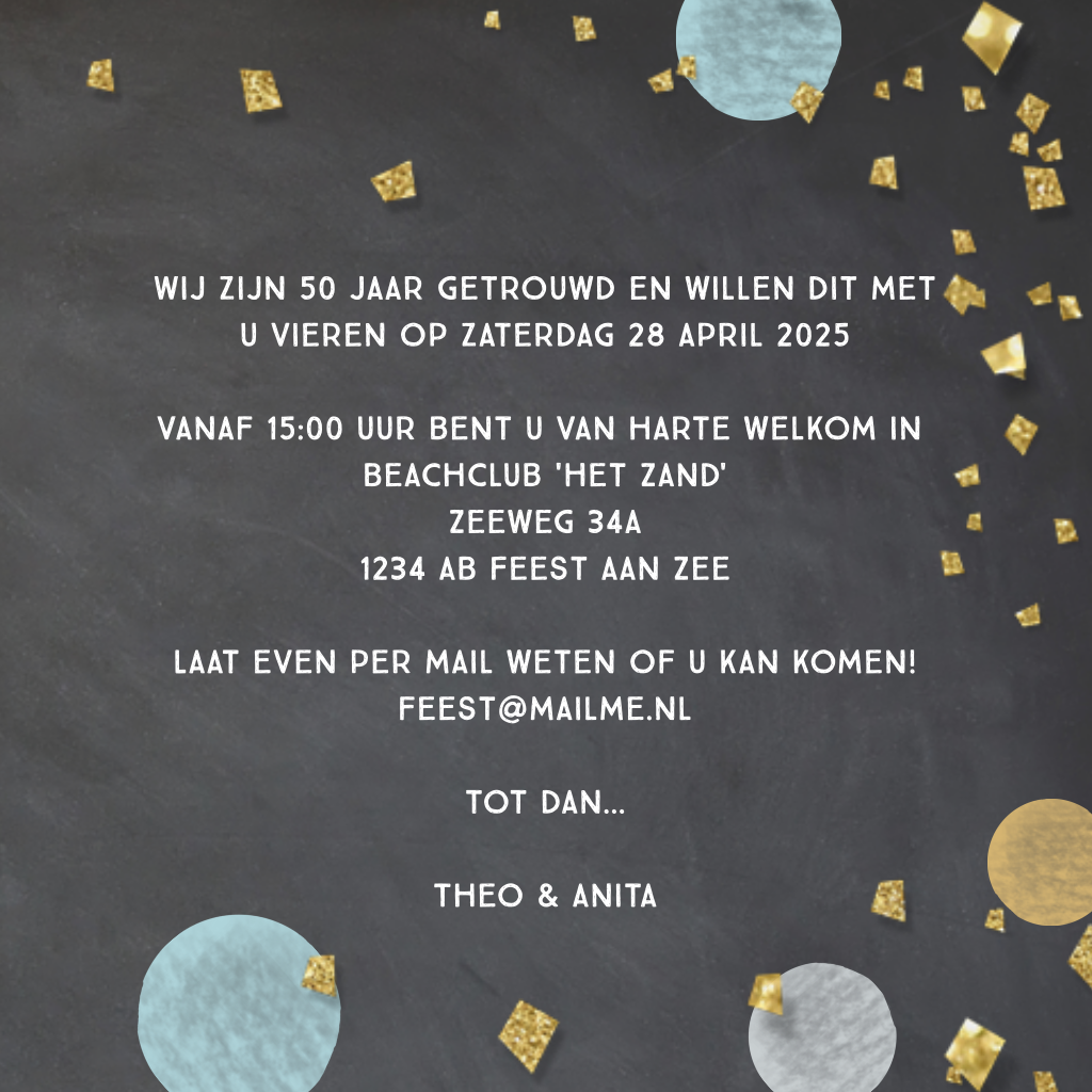 Vrolijke uitnodiging gouden huwelijk met ballonnen