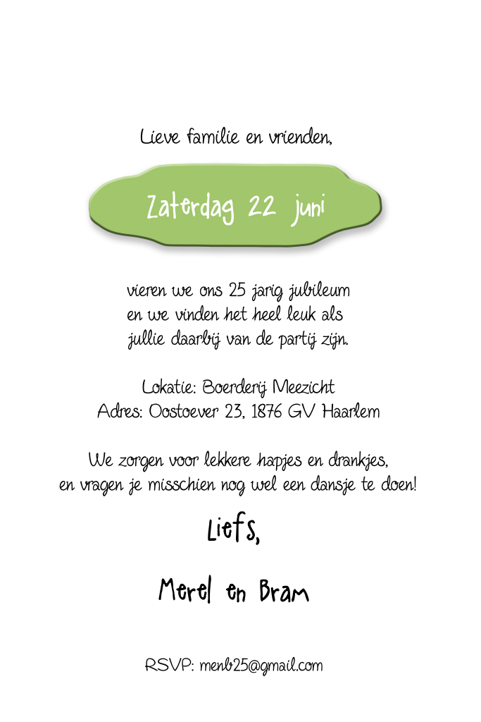 Trendy uitnodiging met een botanisch tintje. De meest exotische groene bladeren met houten wegwijzer borden en een houten hart. Lekker hip!