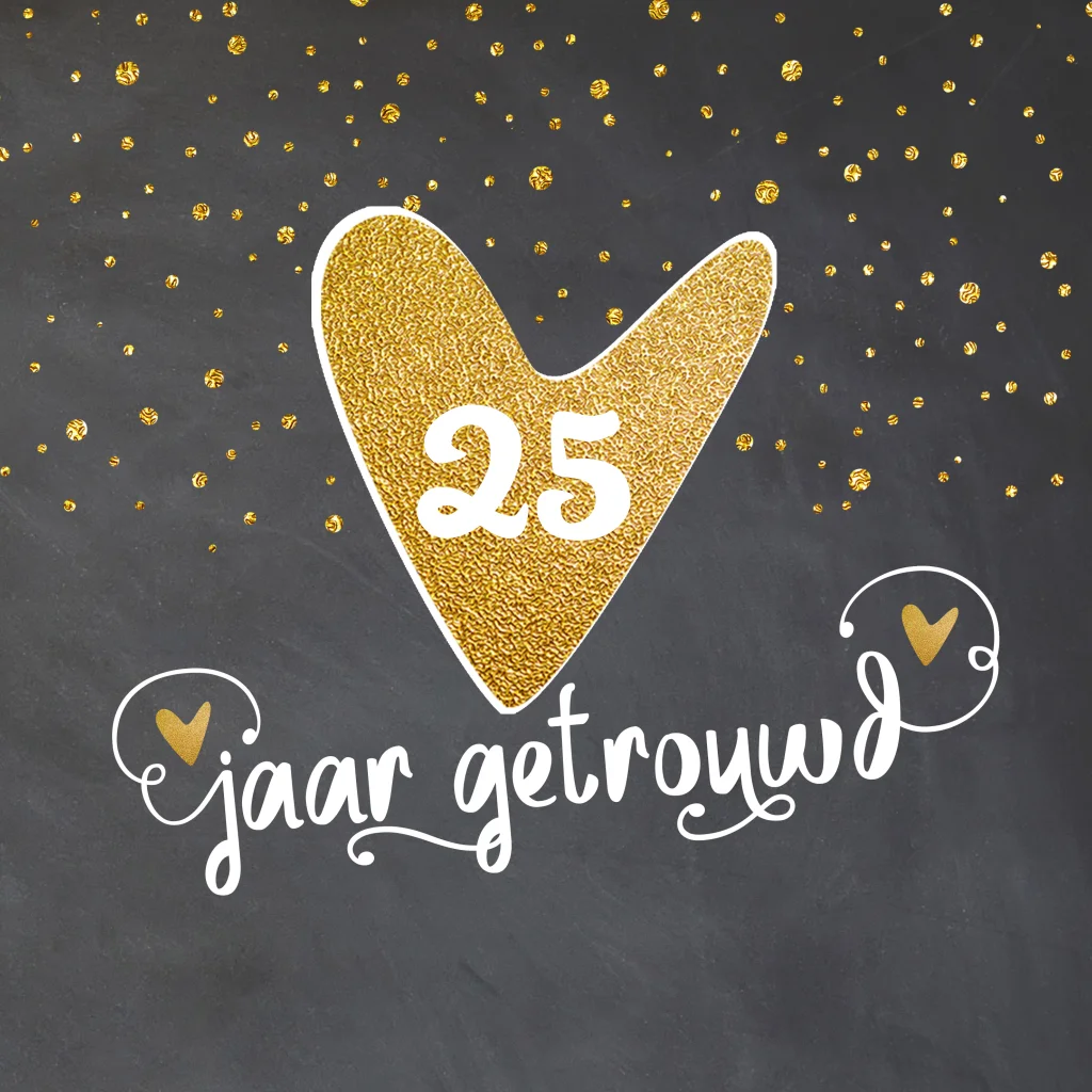 Jubileumkaart 25 jaar huwelijk met glitter hartjes op krijtbord