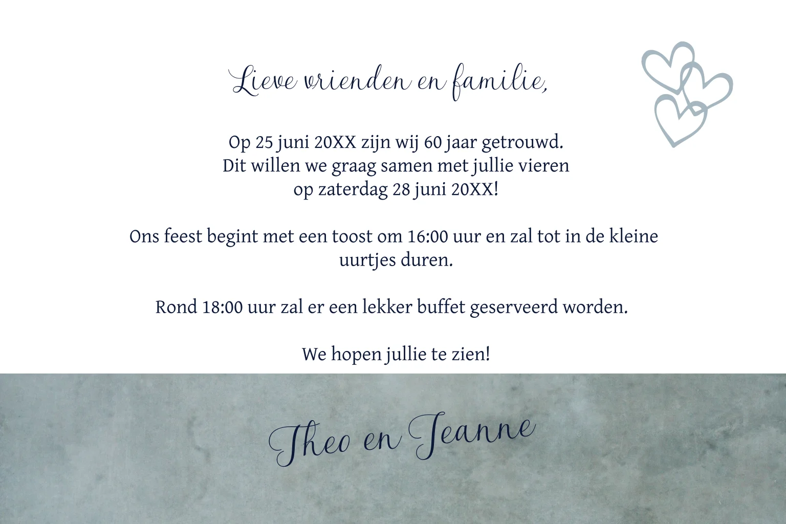 Hippe uitnodiging voor een huwelijks jubileum die je zelf kunt personaliseren. Verander eenvoudig de foto en teksten van deze jubileumkaart.