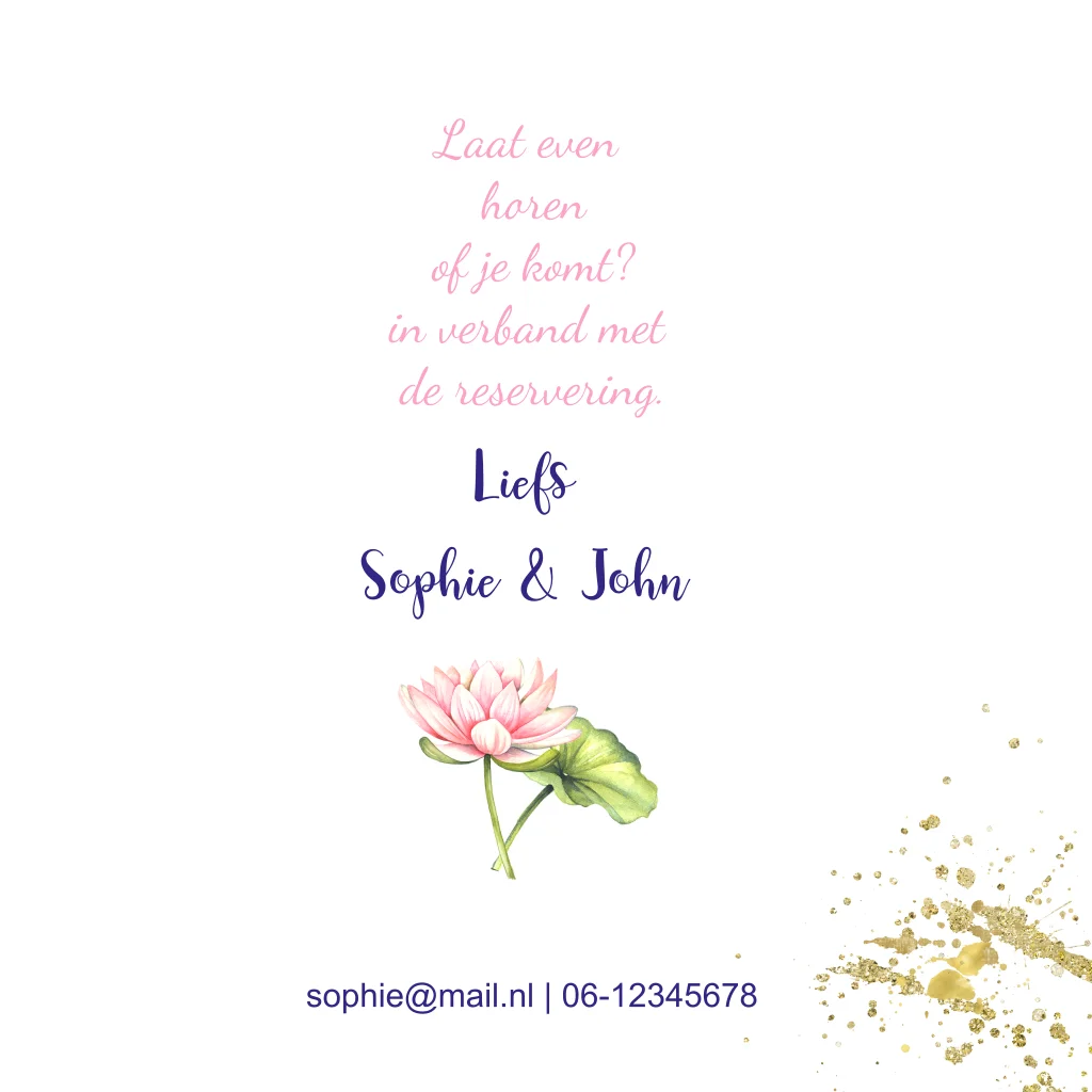 Stijlvolle uitnodiging jubileumfeest met hartjes foto en lotus bloemen