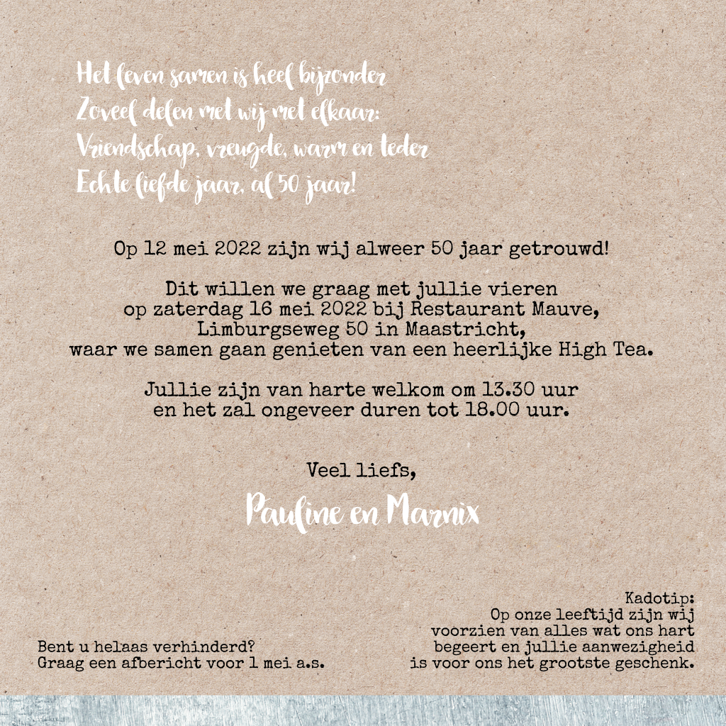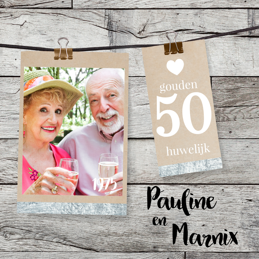 Uitnodiging 50 jaar getrouwd met hout en foto