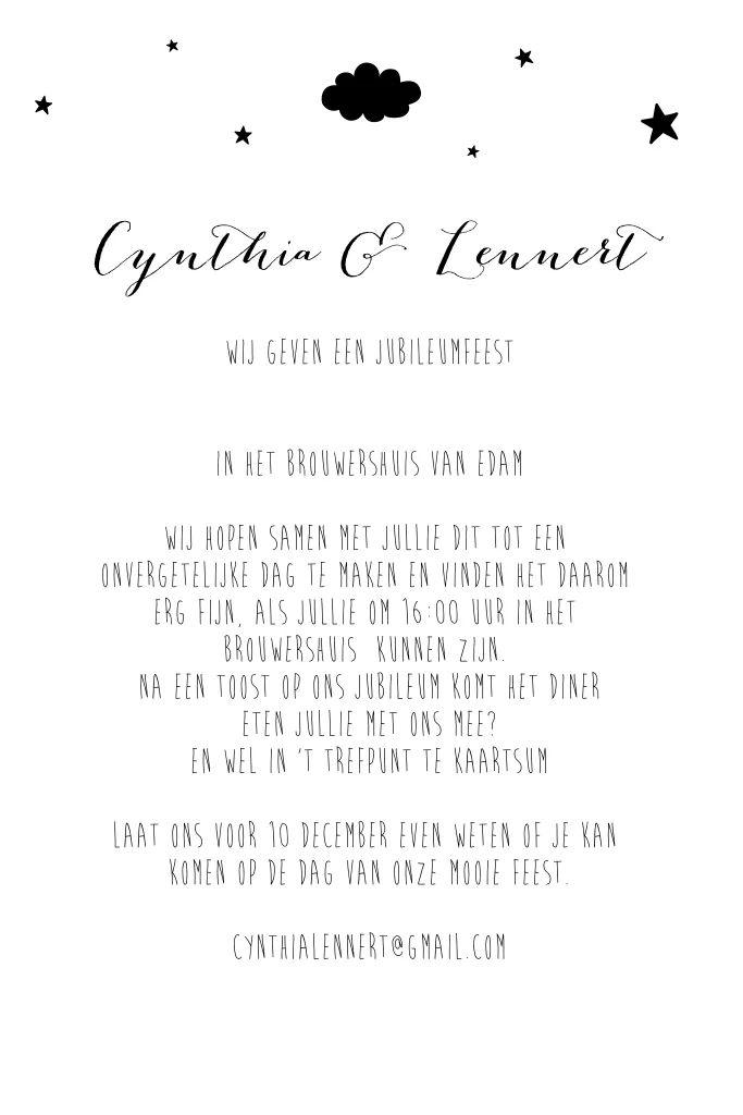Romantische uitnodiging voor 12,5 jarig huwelijk met foto's en kleine sterretjes. Voeg eigen foto's toe aan de kaart in de editor en wijzig hier ook gemakkelijk de tekst van de kaart. Liever een andere kleur achtergrond? Ook dit kan aangepast worden in de editor.