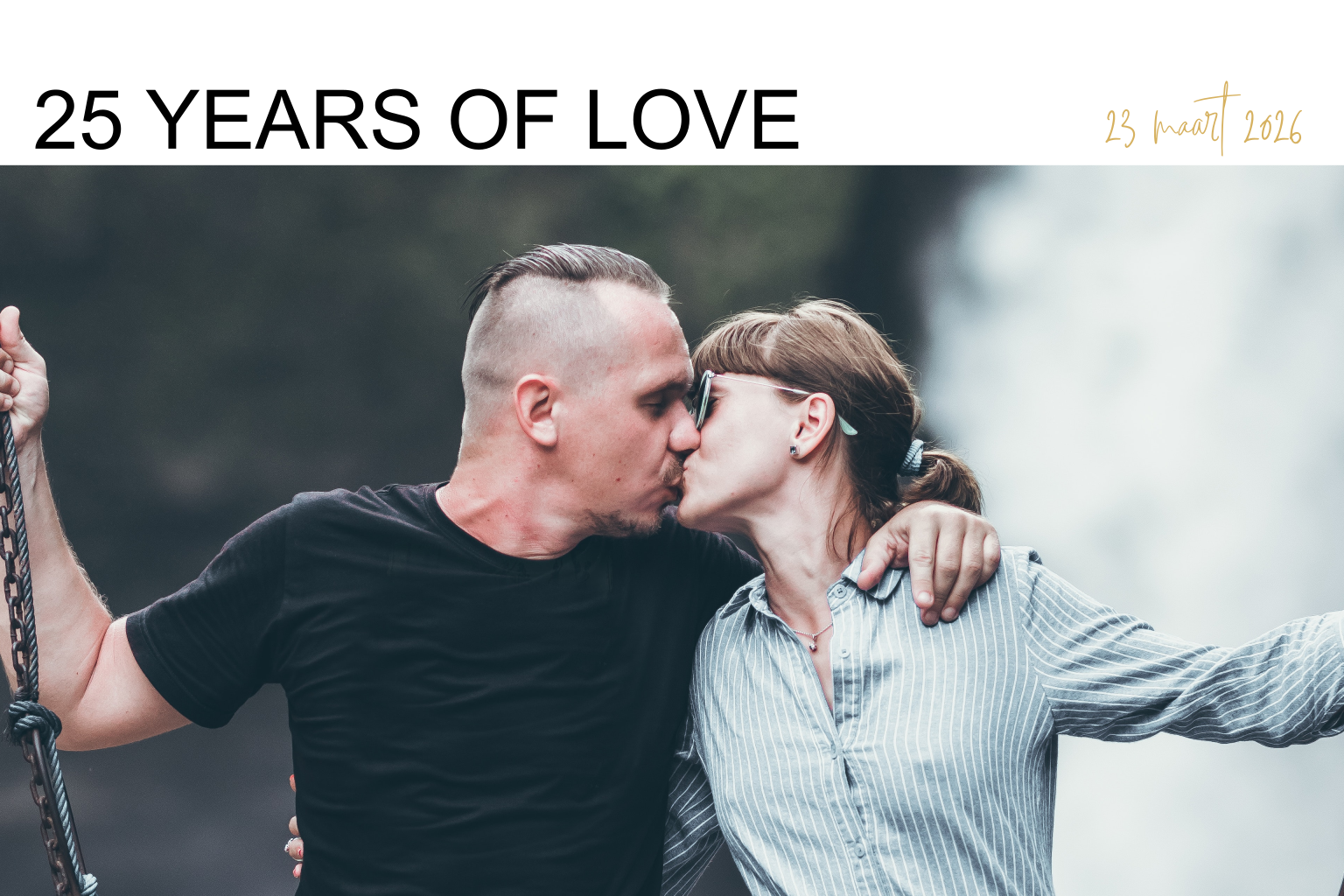 Moderne uitnodiging 25 jarig huwelijk met strak ontwerp en foto