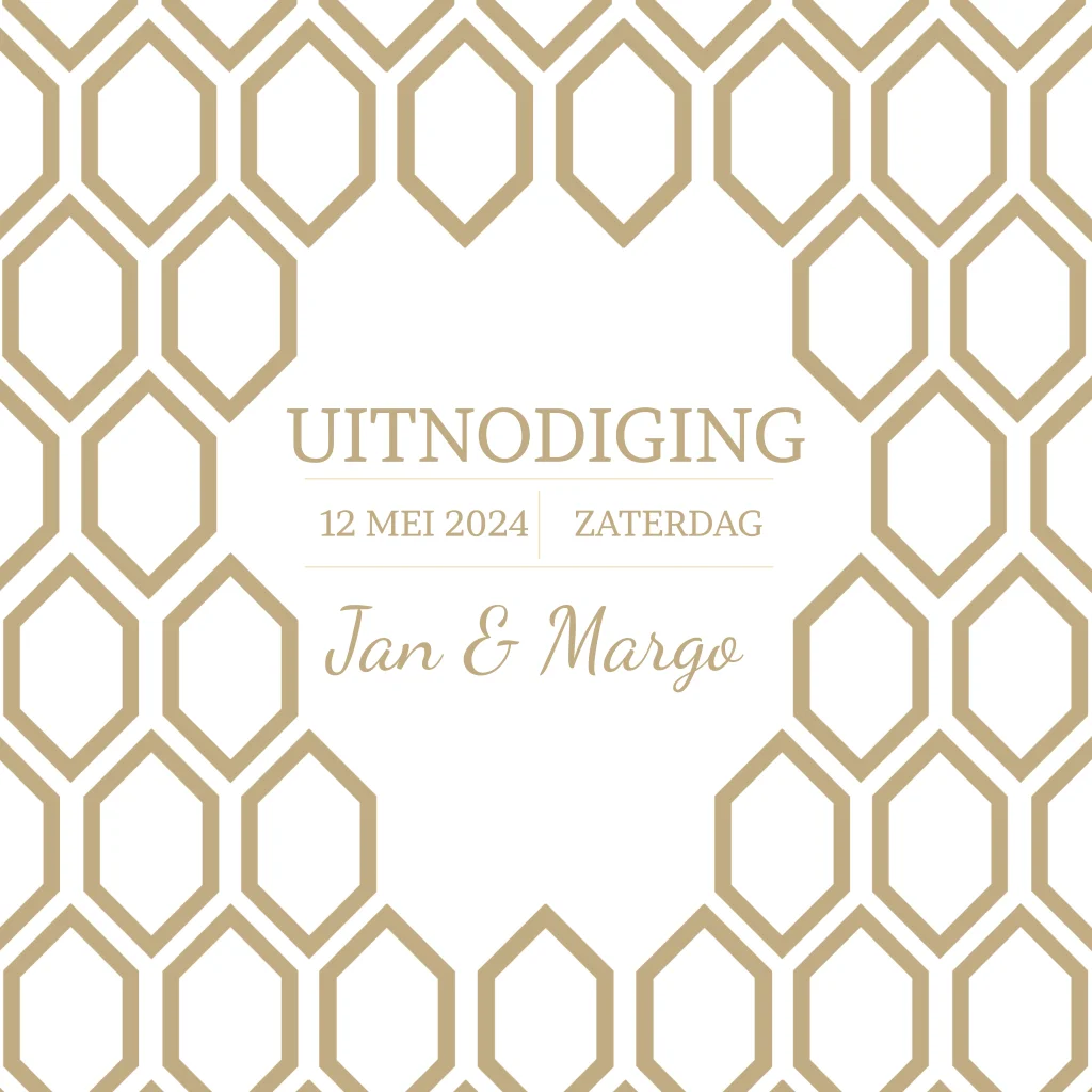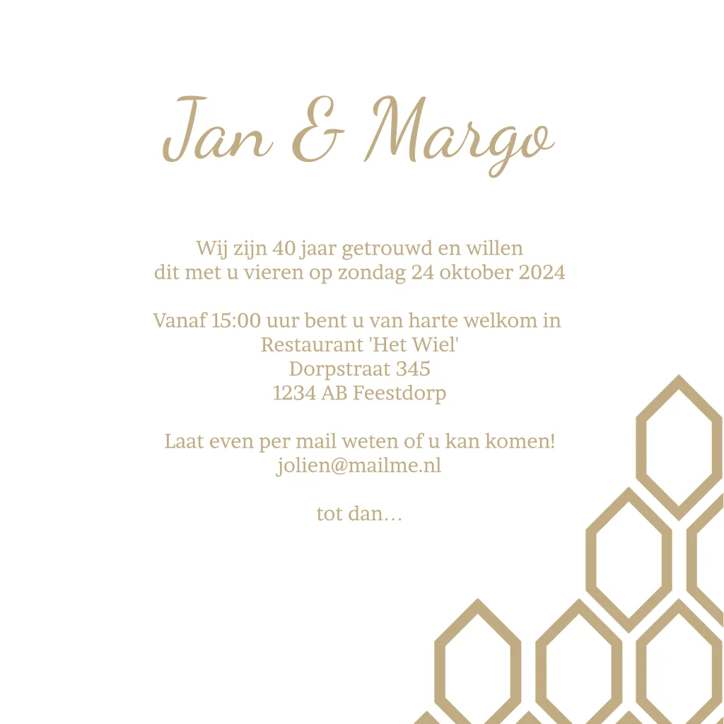 Stijlvolle uitnodiging voor 40 jarig jubileum, met een honingraat patroon op een witte achtergrond.