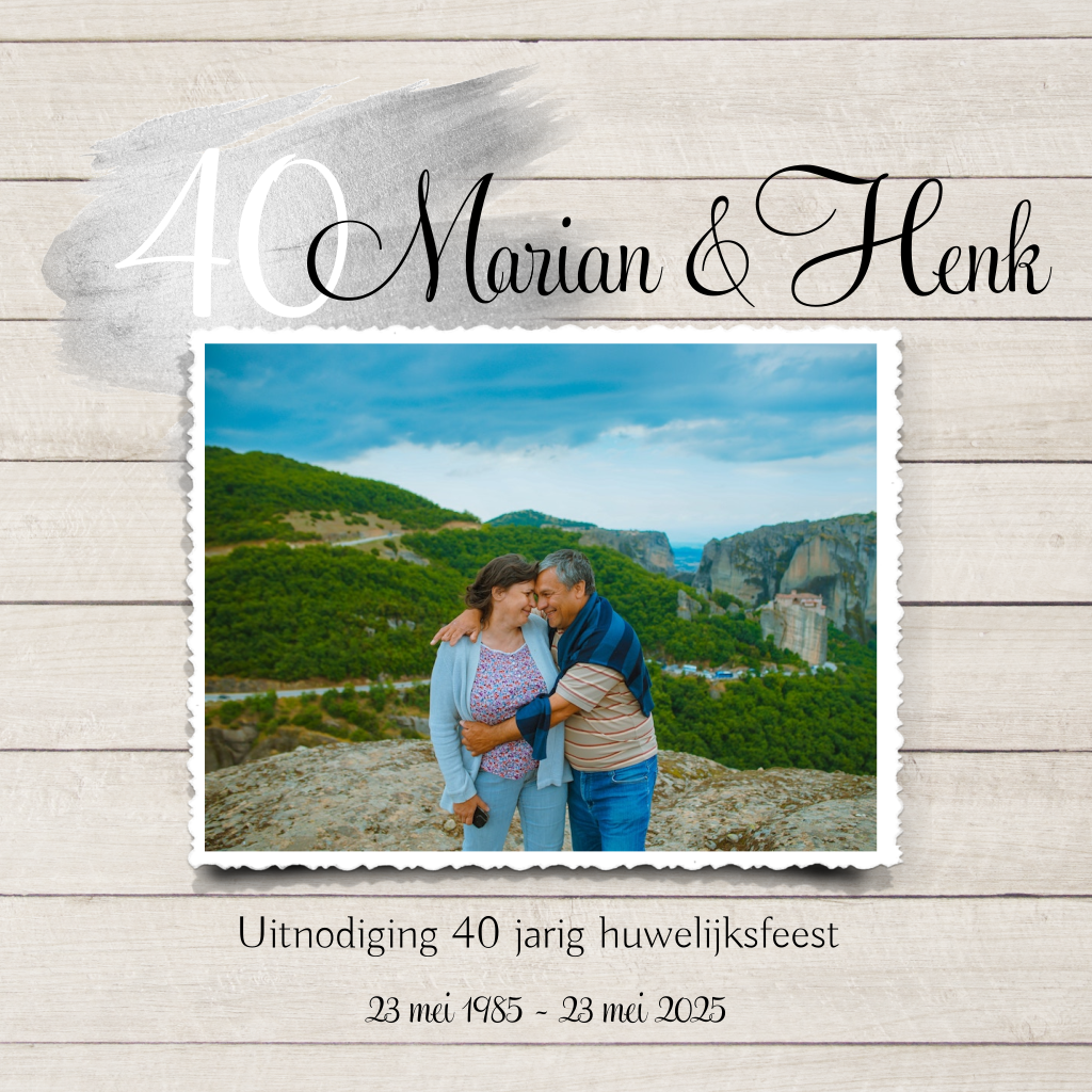 Uitnodigingskaart met houtachtergrond jubileum 40 jaar
