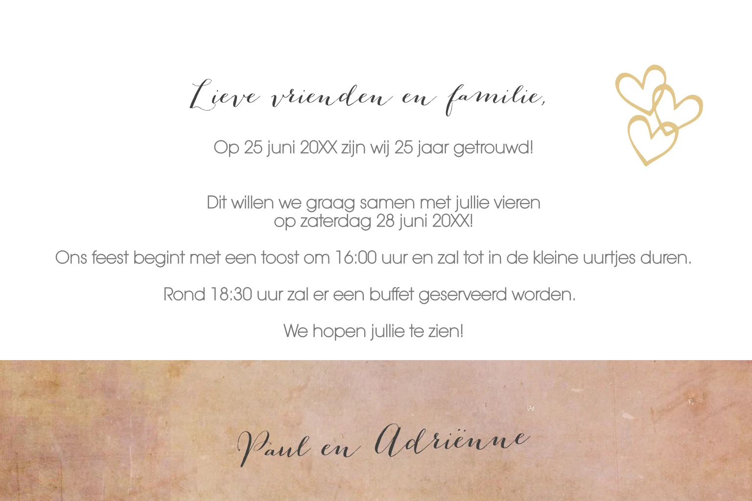 Liggende uitnodiging 25 jaar getrouwd met foto en structuren