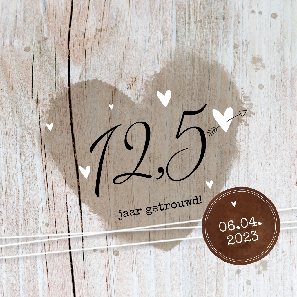 Stoere jubileumkaart 12,5 jaar getrouwd met hart op hout