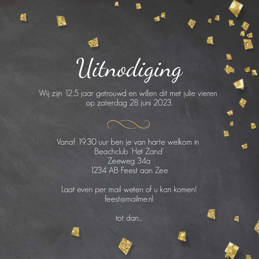 Jubileumkaart 12,5 jaar getrouwd met stoer krijtbord en gouden hart