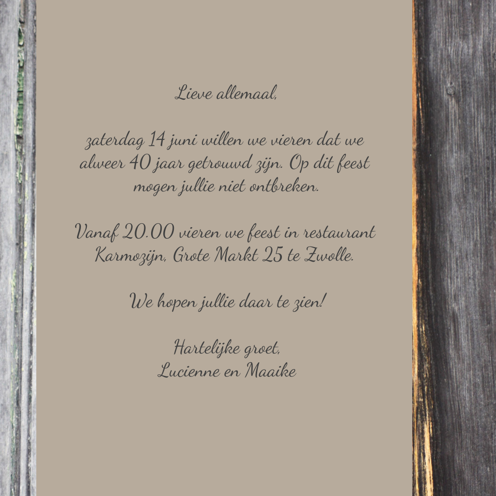 Stoere uitnodiging 50 jaar getrouwd met hout-look