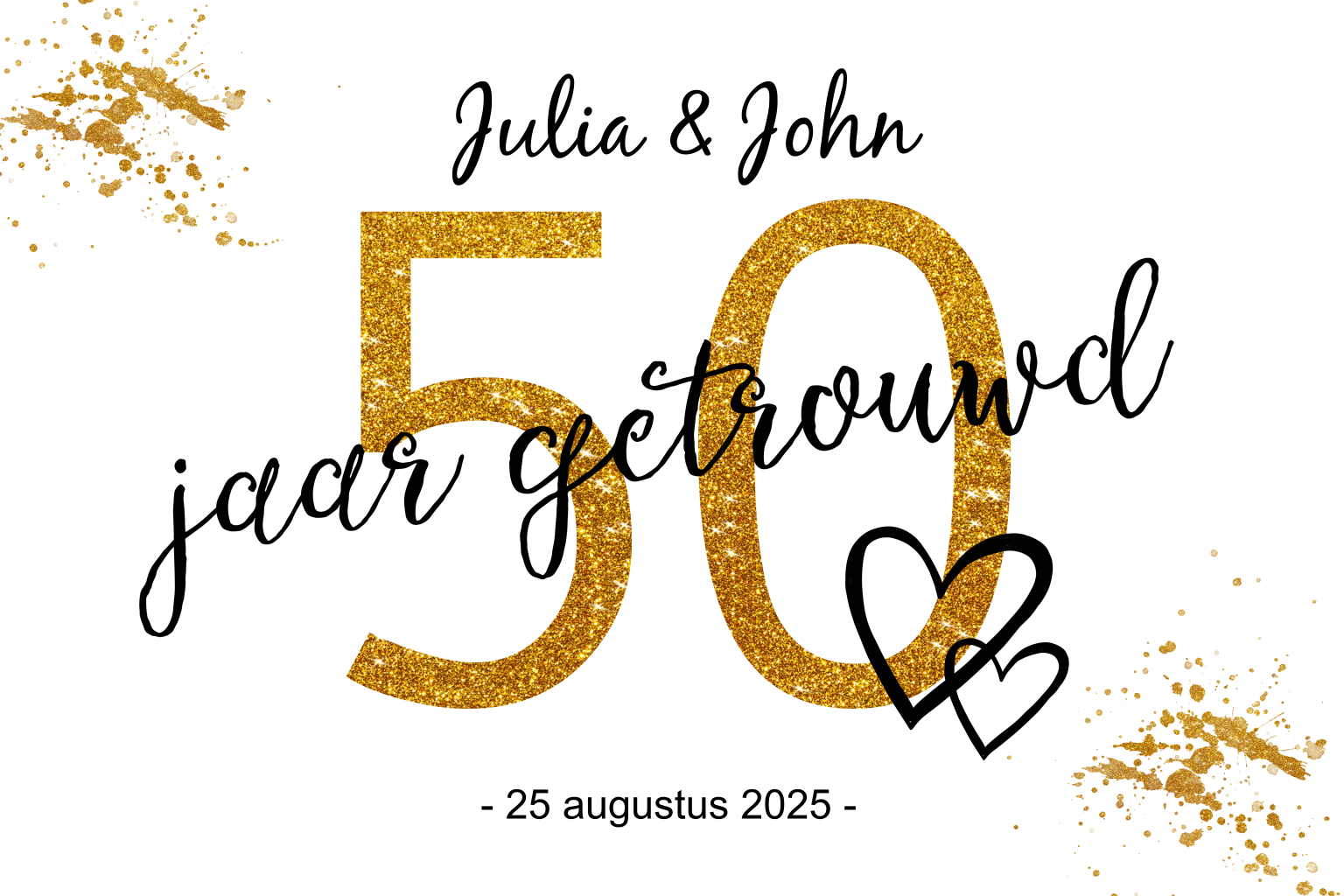 Jubileumkaart 50 jaar met spetters en confetti cijfers