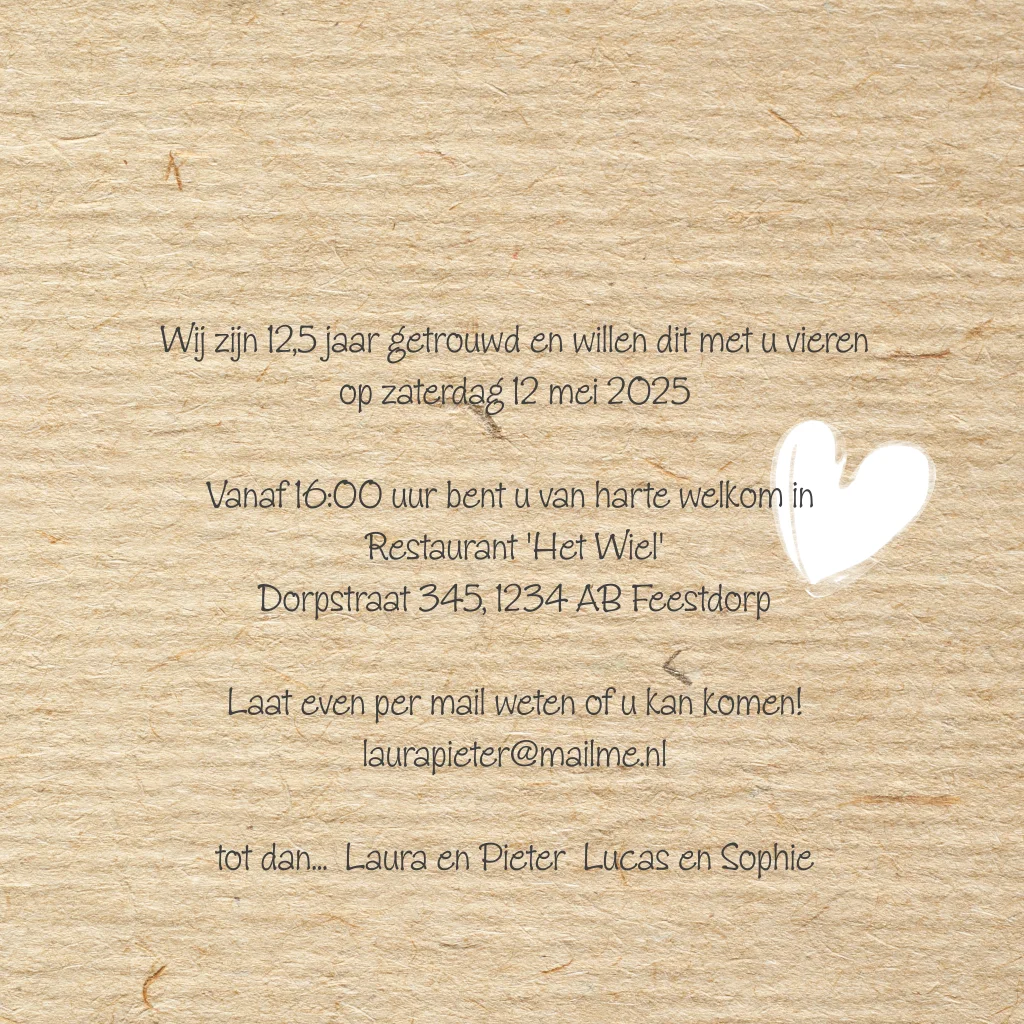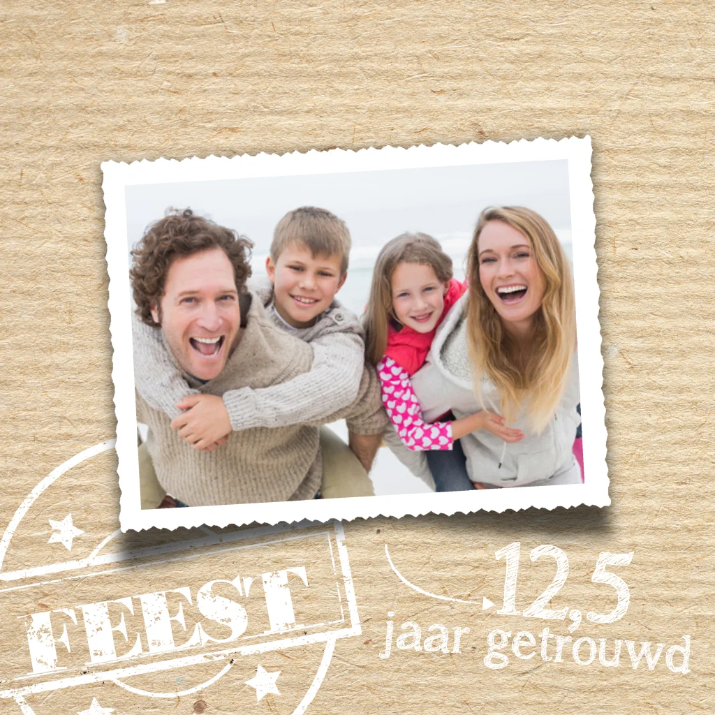Uitnodiging 12,5 jaar huwelijk met foto op kraftlook en stempel