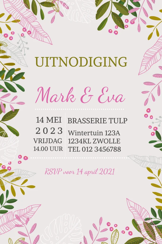 Stijlvolle uitnodiging jubileum met takjes en bladeren