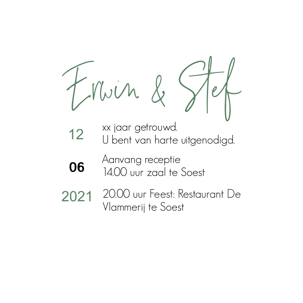 Wat een vrolijke jubileumkaart met rode bloemen en takjes! Maak hem naar wens af in onze online editor en schrijf je eigen teksten.