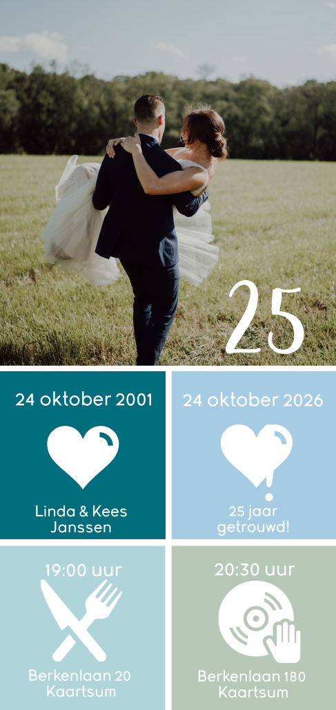 Maak zelf een jubileumkaart met foto en gekleurde vlakken | Langwerpig