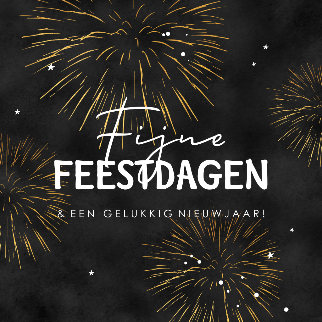 Moderne zakelijke kerstkaart in goudfolie en zwart met vuurwerk