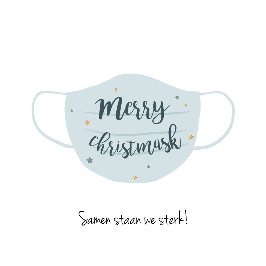 Zakelijke kerstkaart met blauw masker en sterretjes