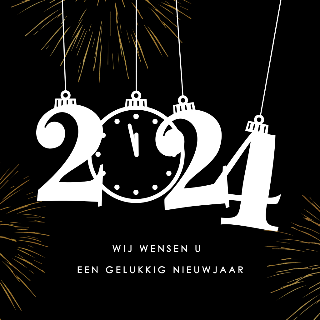 Originele zakelijke nieuwjaarskaart met 2023 en goudfolie klok