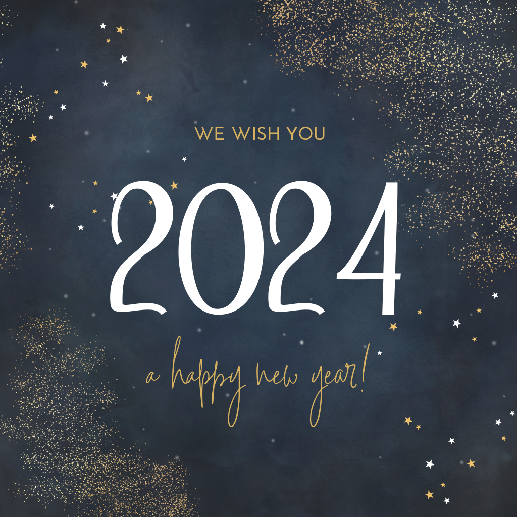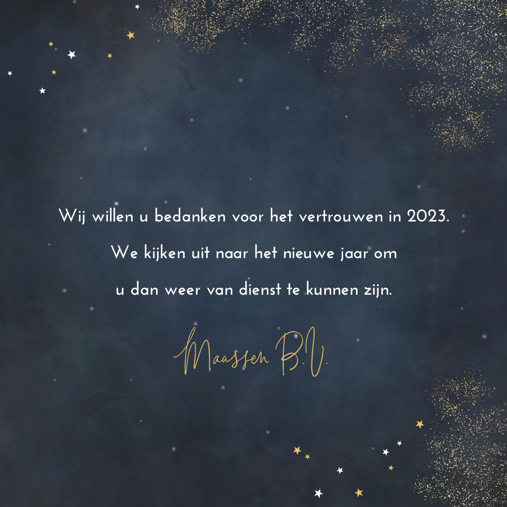 Zakelijke nieuwjaarskaart met gouden spetters en sterren