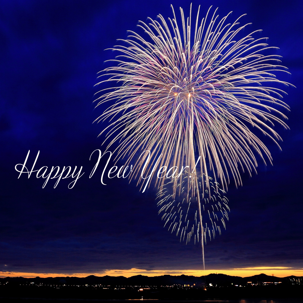 Wat een prachtig vuurwerk met een paarsblauwe lucht als achtergrond! Wens anderen een gelukkig Nieuwjaar met deze dubbele kaart. Teksten en lettertypes kun je zelf aanpassen.