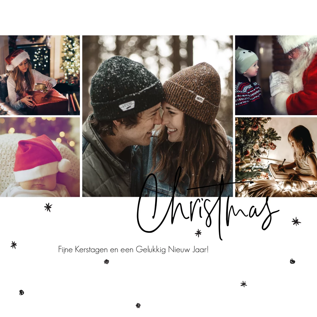 Feestelijke kerstkaart met foto's en sneeuwvlokjes