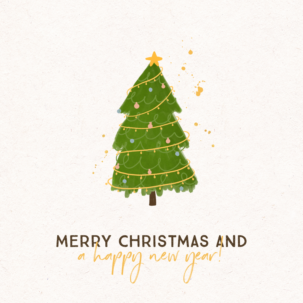 Kerstkaart met illustratie van een kerstboom voor gelukkig nieuwjaar