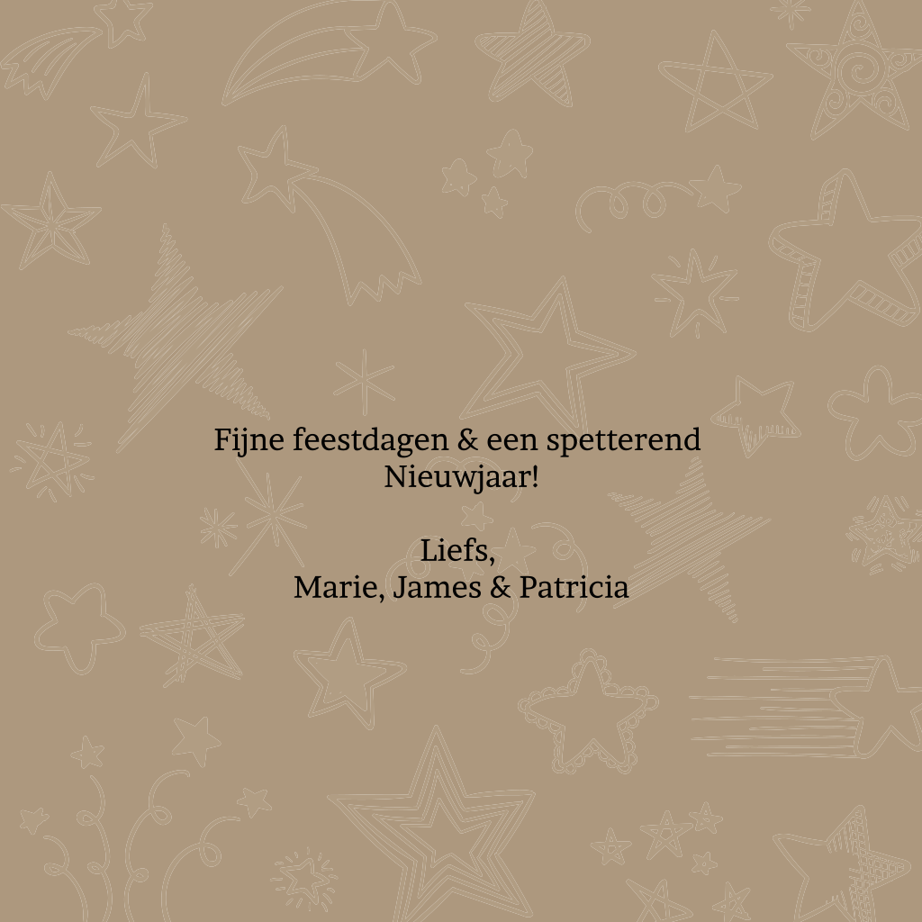 Een moderne, knusse kerstkaart met verschillende vakjes. In sommige vakjes kun je eigen foto's plaatsen. In andere staan afbeeldingen van hout met een tof label of met witte sneeuwsterren. Krijg jij al zin in kerst?
