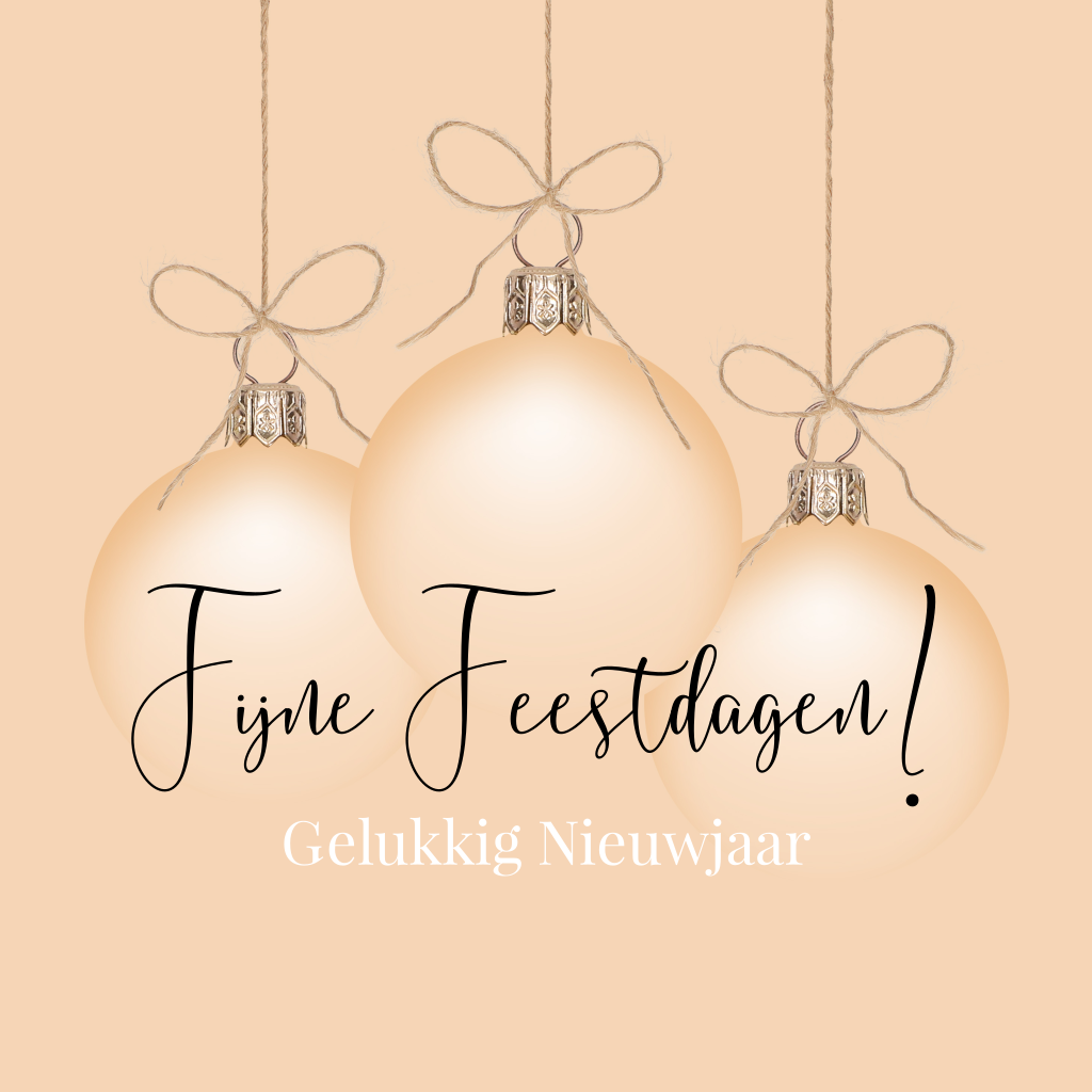 Een sfeervolle kerstkaart met pastel gekleurde kerstballen en achtergrond.