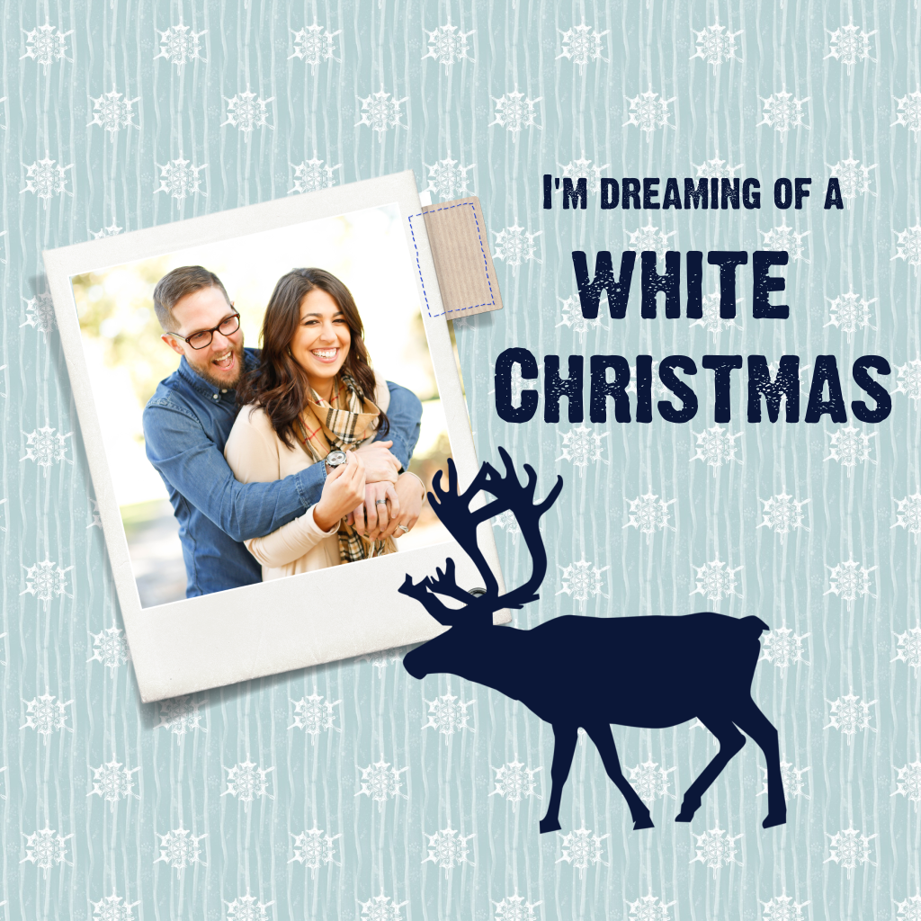 'I am dreaming of a white Christmas' staat er op dit moderne kerstkaartje geschreven. Het rendier maakt dit kerstkaartje helemaal compleet! Ook leuk is dat je een persoonlijke foto toe kunt voegen.
