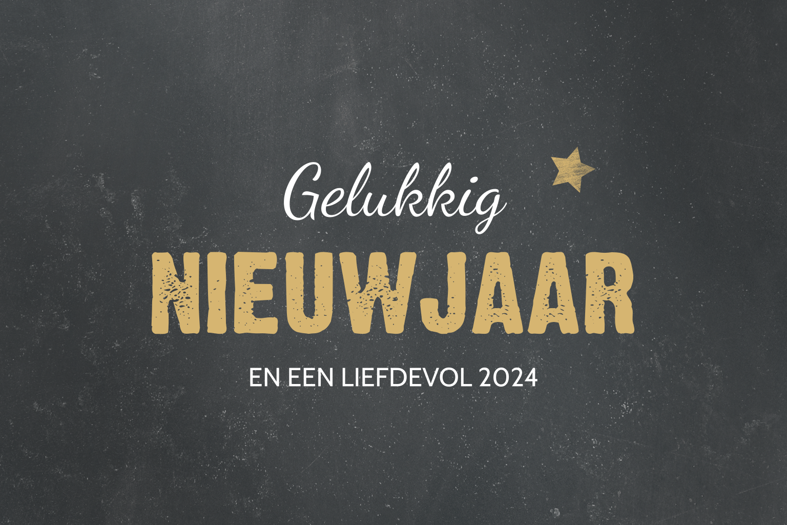 Deze stoere kerstkaart met zwarte krijtbord-achtergrond heeft teksten in grote en geblokte teksten en kleine sterren. Je kunt hier helemaal je eigen kaart van maken door teksten, lettertypes en kleuren naar jouw wens aan te passen in de online editor!