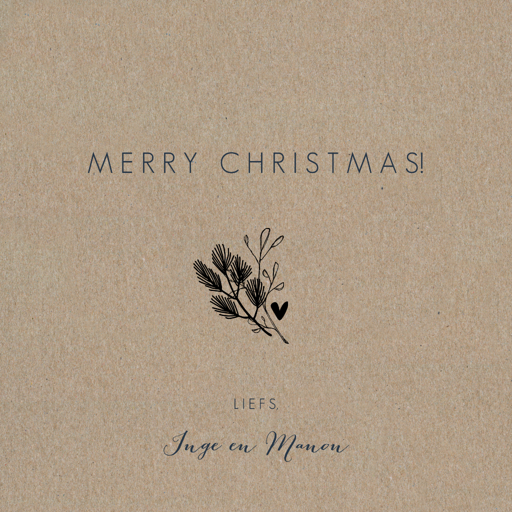 Kraft kerstkaart met zwarte takjes en drie foto's