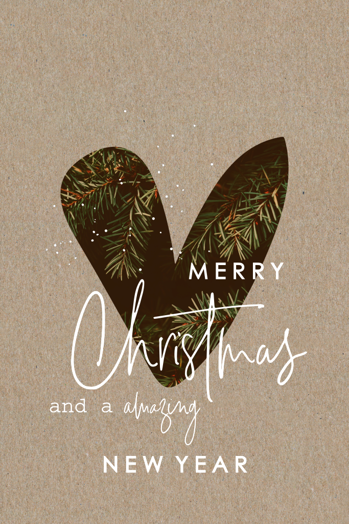 Moderne kraft kerstkaart met leuke lettertypes en hart