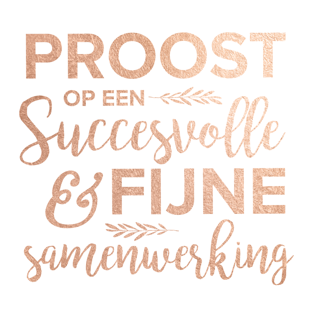 Wat een hip kerstkaartje met teksten in verschillende lettertypes in koperkleur op een witte achtergrond! Dit is een zakelijke kerstkaart met een feestelijke uitstraling. Proost op een succesvolle & fijne samenwerking!