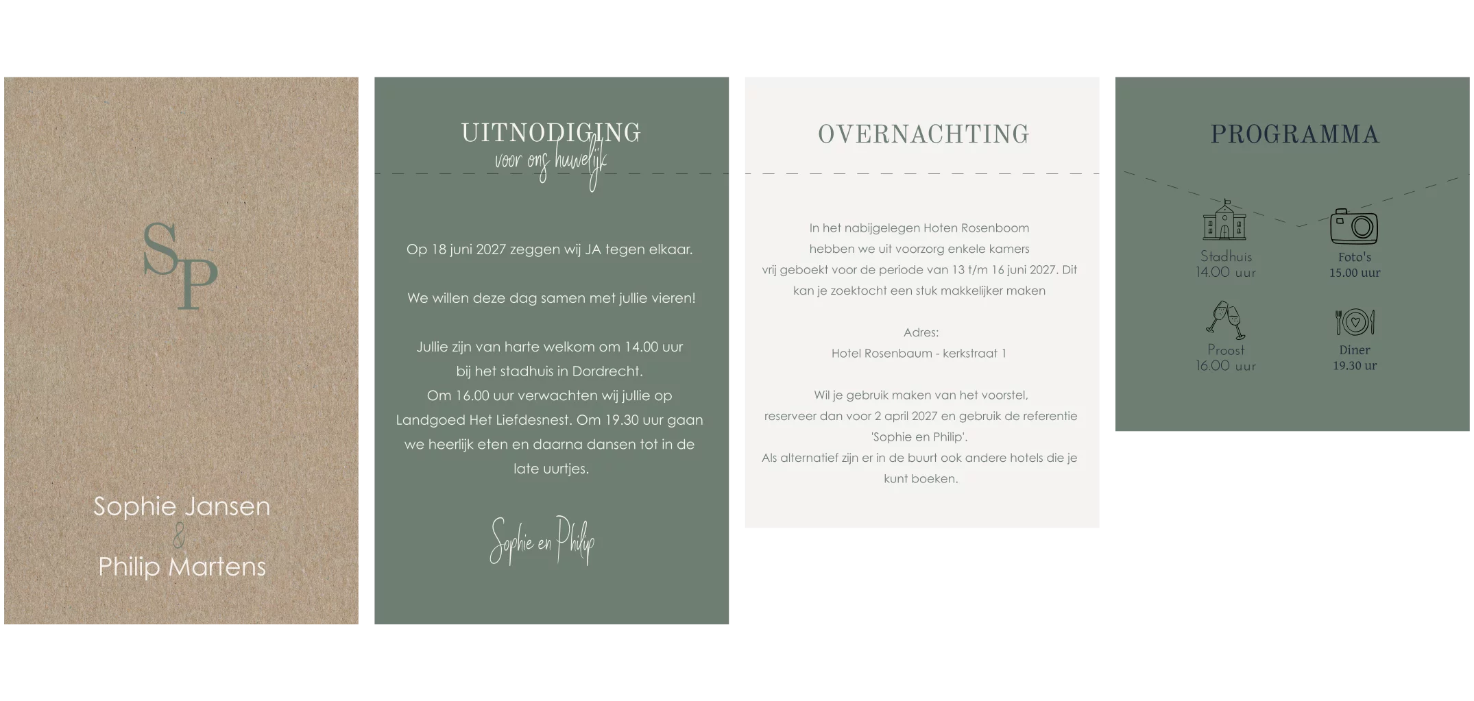 Mooie pocketfold in olijfgroen en kraftlook met ruimte voor een mooie foto op de achterkant.