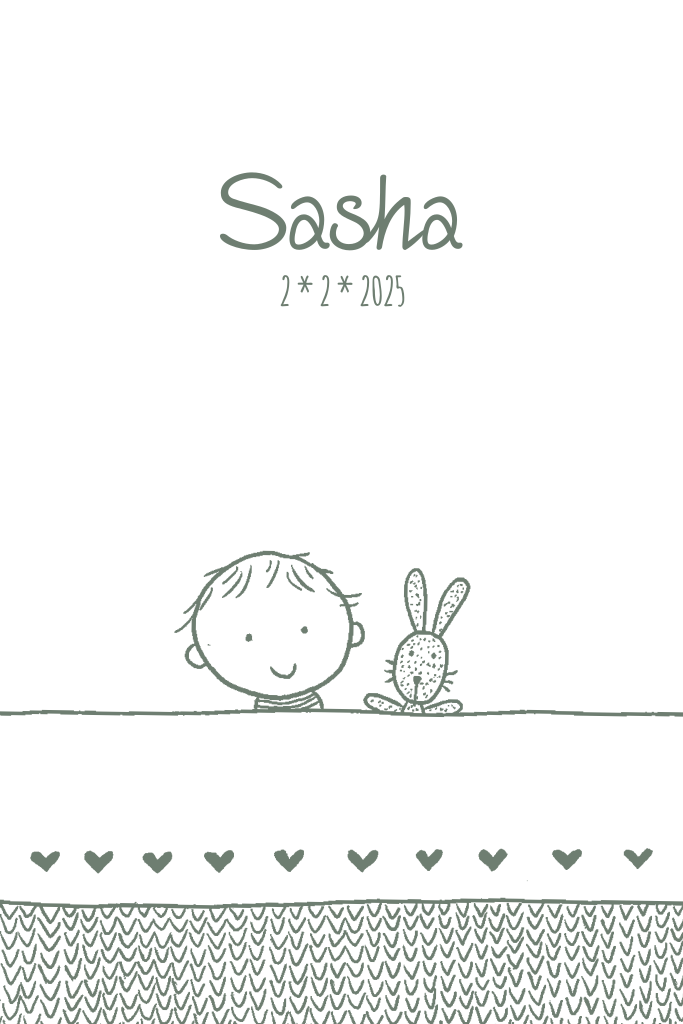 Lief en klassieke babykaart met de tekening van een baby die zijn knuffel vasthoudt. De ronde hoekjes geven aan deze kaart een extra lieve uitstraling.