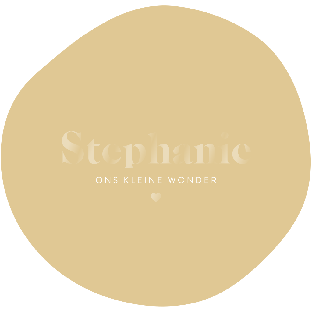 Geboortekaartje in een originele organische vorm met hoogglans letters in woestijnzand kleur, helemaal hip! Op deze enkele kaart staat de naam in moderne letters in het midden, liever een ander lettertype? In de online editor pas je dit eenvoudig zelf aan.