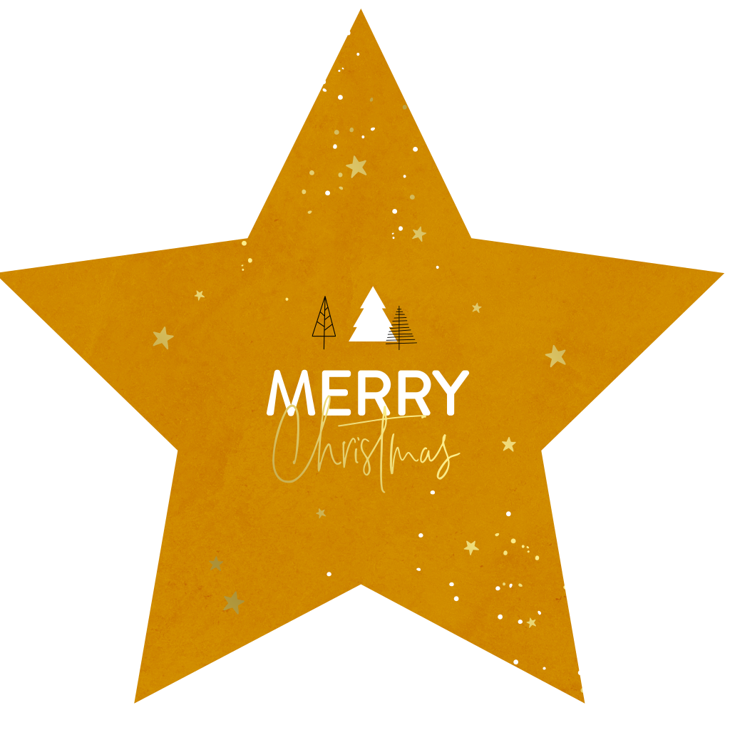 Goudfolie kerstkaart in een ster-vorm met kerstbomen