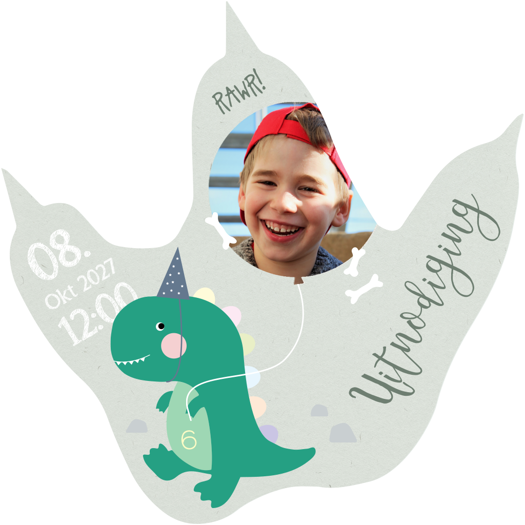 Is jullie zoontje ook gek op dino's? Stuur dan deze coole uitnodiging voor zijn verjaardag in de vorm van een dinopoot naar familie en vrienden. Het kaartje is in verschillende kleuren groen en bovenaan kun je een leuke foto downloaden, maak de kaart persoonlijk in de online editor.