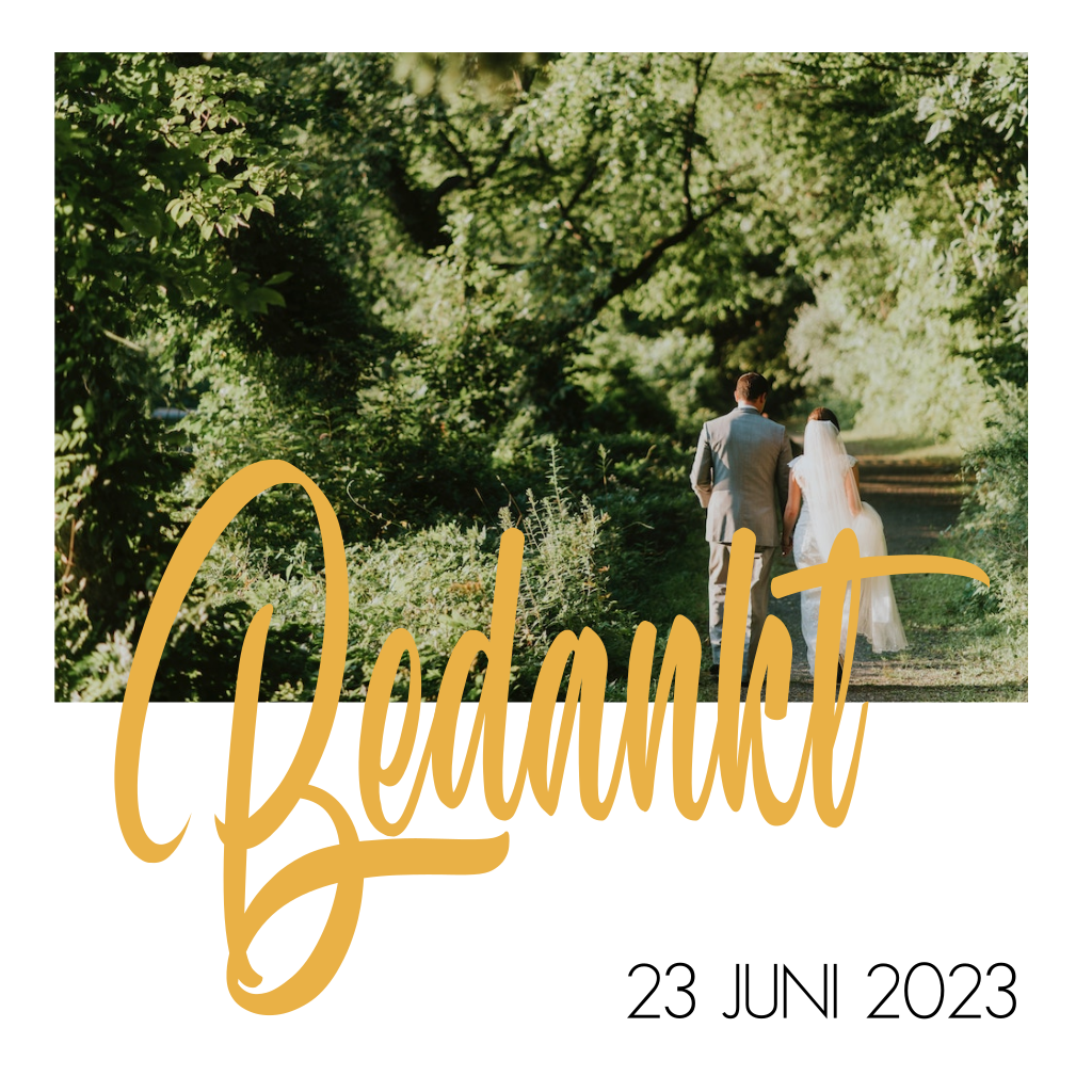 Vierkante bedankkaart om iedereen te bedanken die op jouw bruiloft is geweest! Voeg een persoonlijke foto toe en maak het helemaal jouw eigen kaartje.