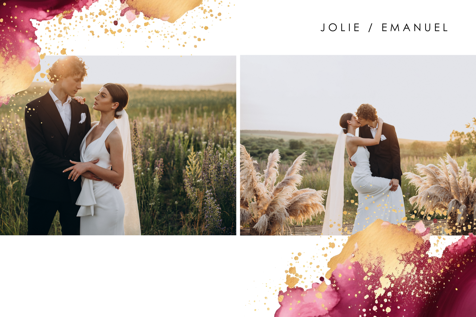 Mooie bedankkaart in stijl van de trouwkaart met de berry gold waterverf. Op de voorkant kun je jullie mooiste twee foto's plaatsen met hulp van de online editor, de tekst 'bedankt' staat in luxe goudfolie.