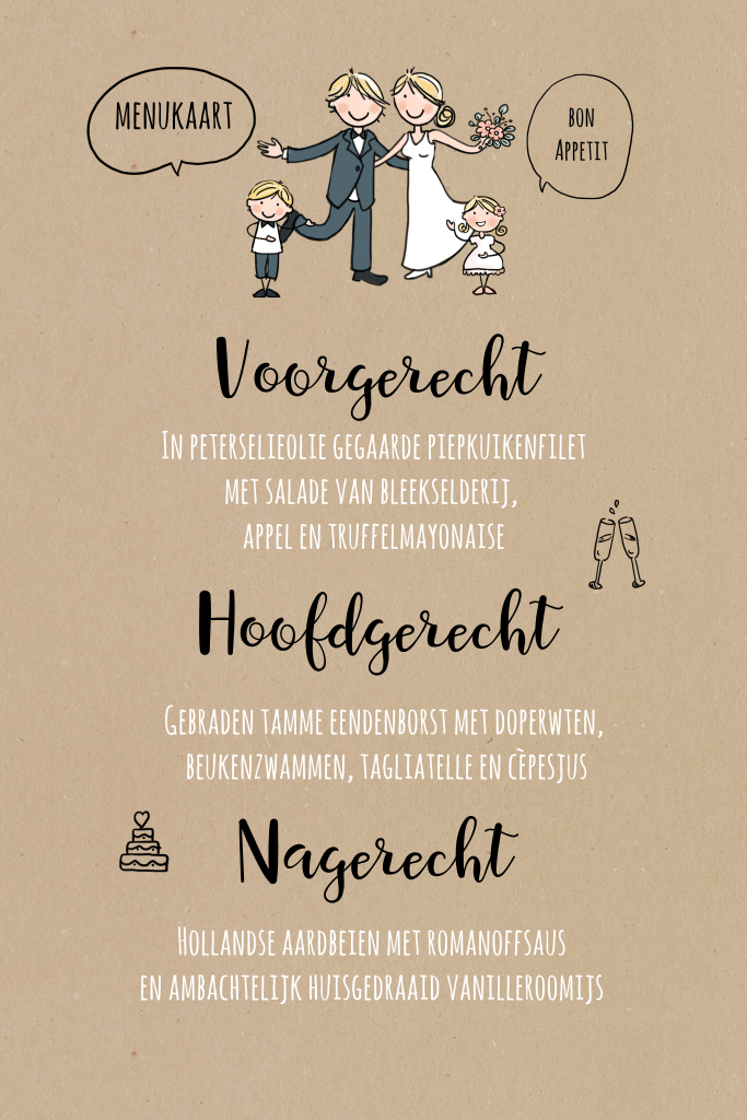 Een leuke en grappige menukaart met strip! Pas je menu makkelijk aan in de editor.