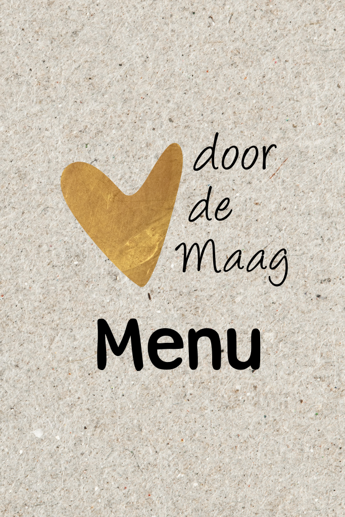 Uniek aan deze hippe menukaart is de achtergrond in combinatie met het goudkleurige hart. Ook tof zijn de bestek-icoontjes op de achterkant. Eetsmakelijk!