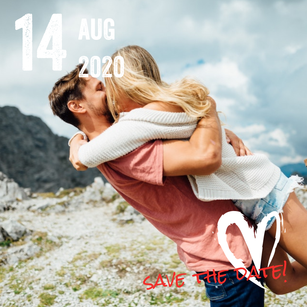 Trouwplannen? Misschien is dit save the date kaartje wat voor jullie. Leuk aan deze save the date kaart zijn het hart en de verschillende lettertypes die zijn gebruikt. Voeg een eigen foto toe en maak er een persoonlijk kaartje van! Je kunt lettertypes en achtergrondkleuren zelf ook aanpassen in de online editor.