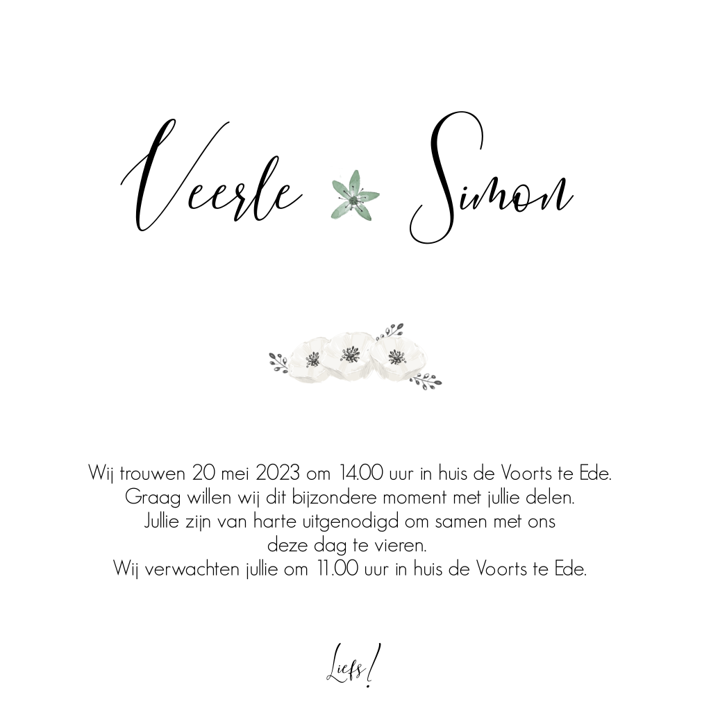 Een hart gemaakt van allemaal mooie bloemen: wat romantisch! Kondig jullie bruiloft alvast aan en stuur dit stijlvolle kaartje naar vrienden en familie. Tip: hij komt mooi uit op de papiersoort parelmoer!