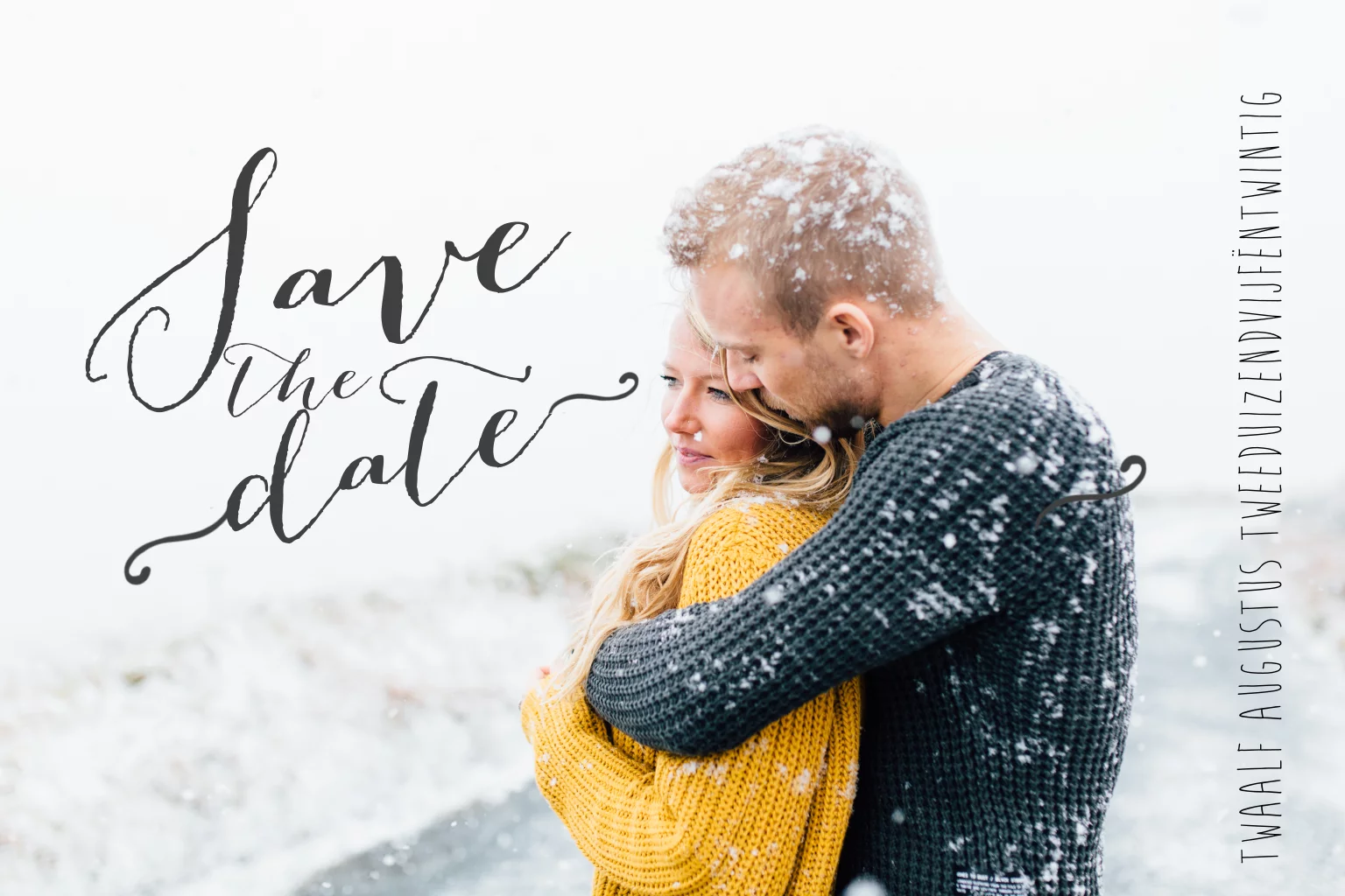 Deze save-the-date-kaart met foto maak je helemaal uniek en eigen met een mooie foto van jullie samen! Een hip trouwkaartje voor een stel.
