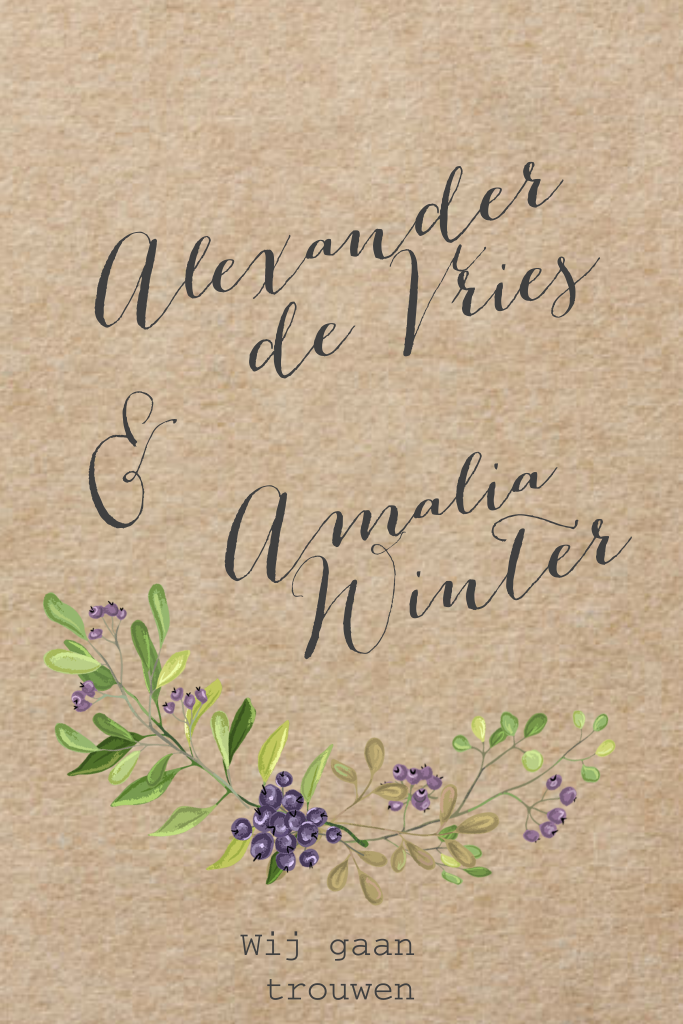 Een trouwkaart van kraft met een sierlijk bloementakje: wat stijlvol! Op de achterkant van deze hippe kaart kun je jullie eigen teksten kwijt. Wanneer is jullie trouwerij?