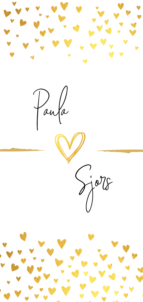 Al die dwarrelende, goudkleurige hartjes maken deze romantische, staande trouwkaart zo mooi! Het hippe lettertype maakt hem helemaal compleet. Iets voor jullie?